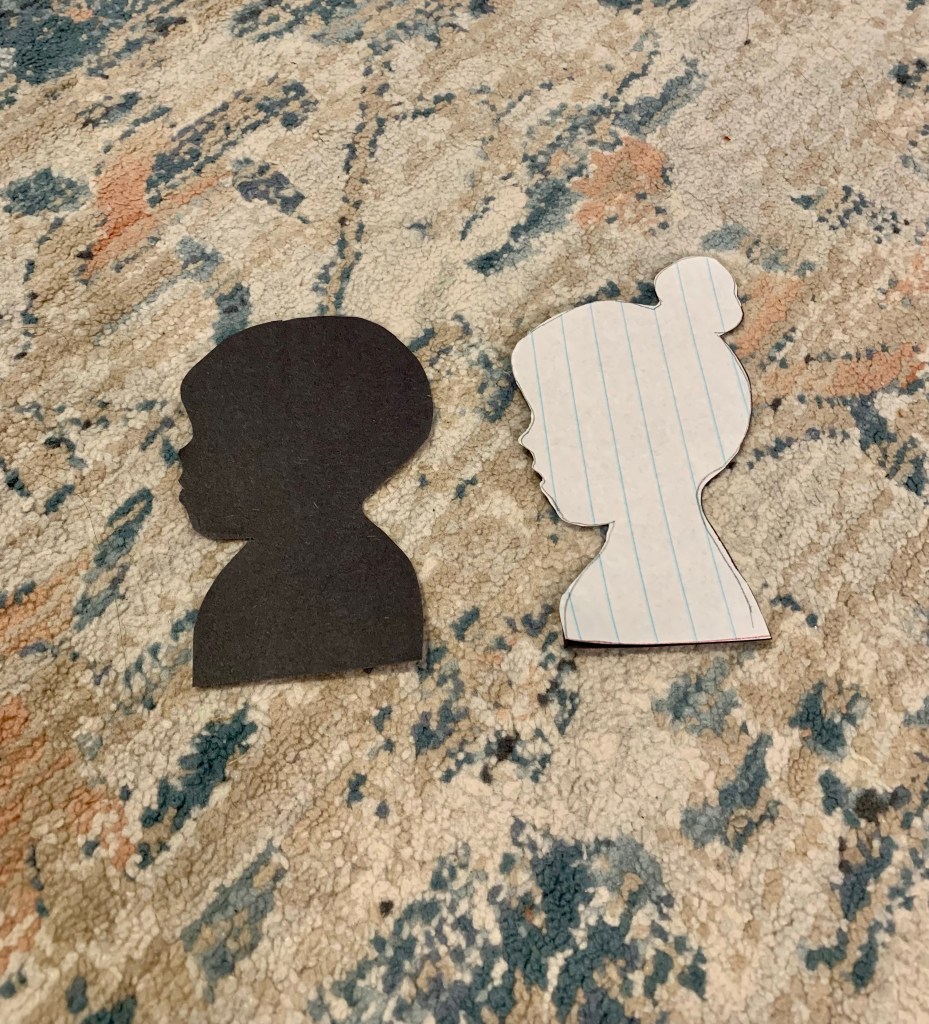 - 4. Next, tape the white paper to the final black paper, or whatever color you plan on using. This will help to keep the papers from slipping on you while cutting.