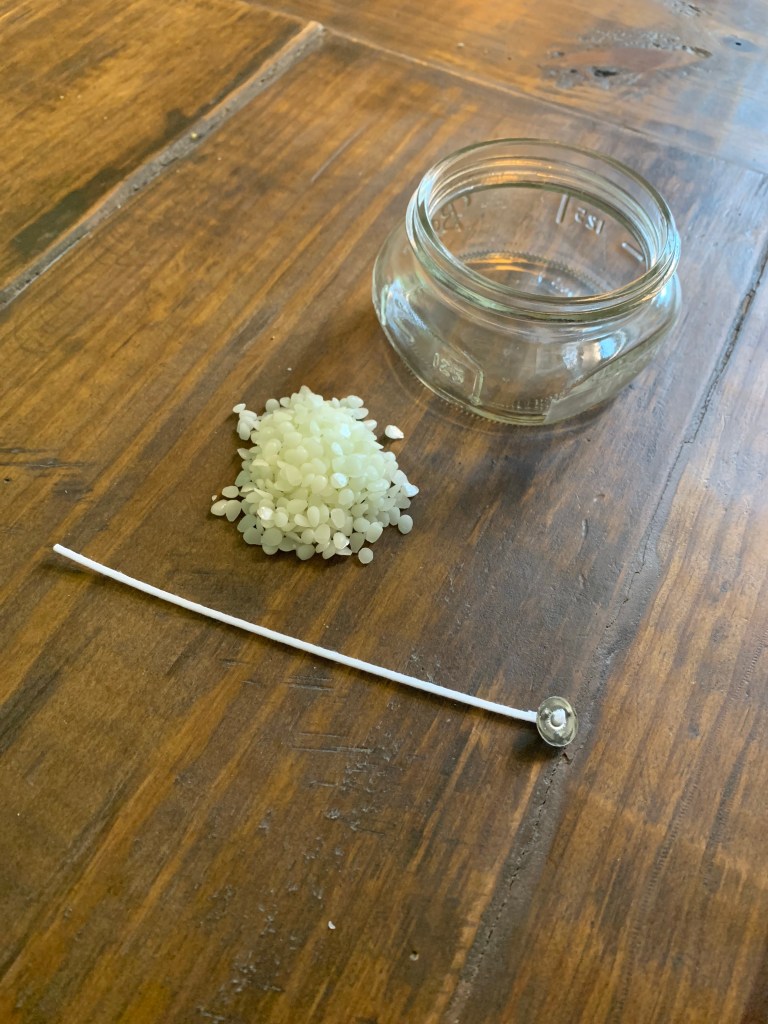 To make an essential oil candle you will need a wax, glass jars, cotton wick, and essential oils. Two options for wax include soy and beeswax.