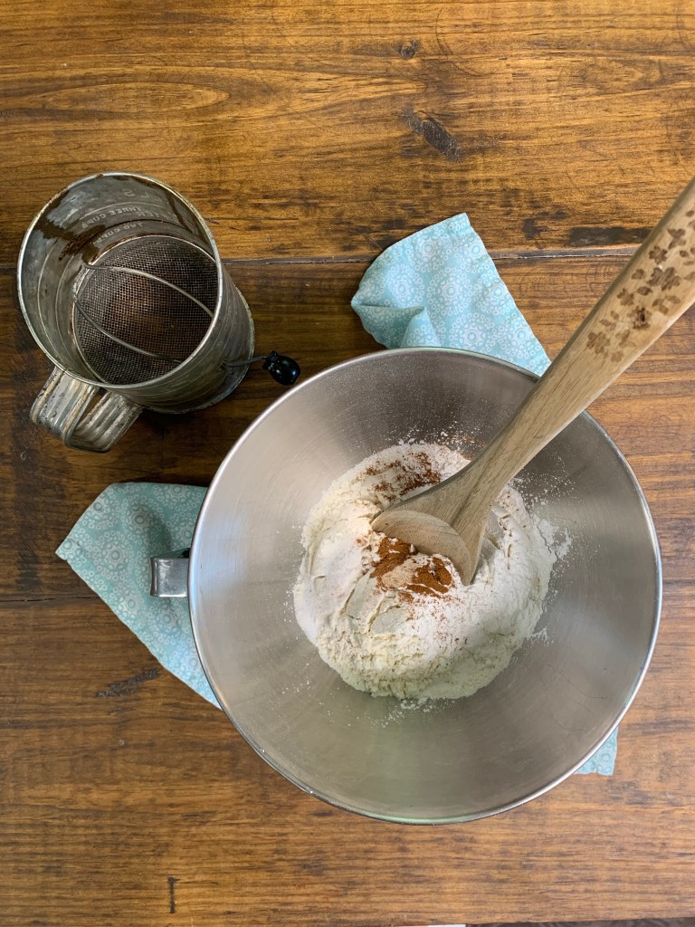 2. Mix the flour, baking soda, baking powder, cinnamon, and salt in a bowl and set to the side.