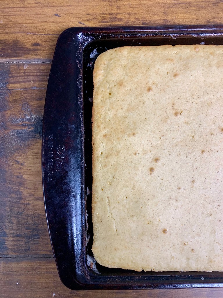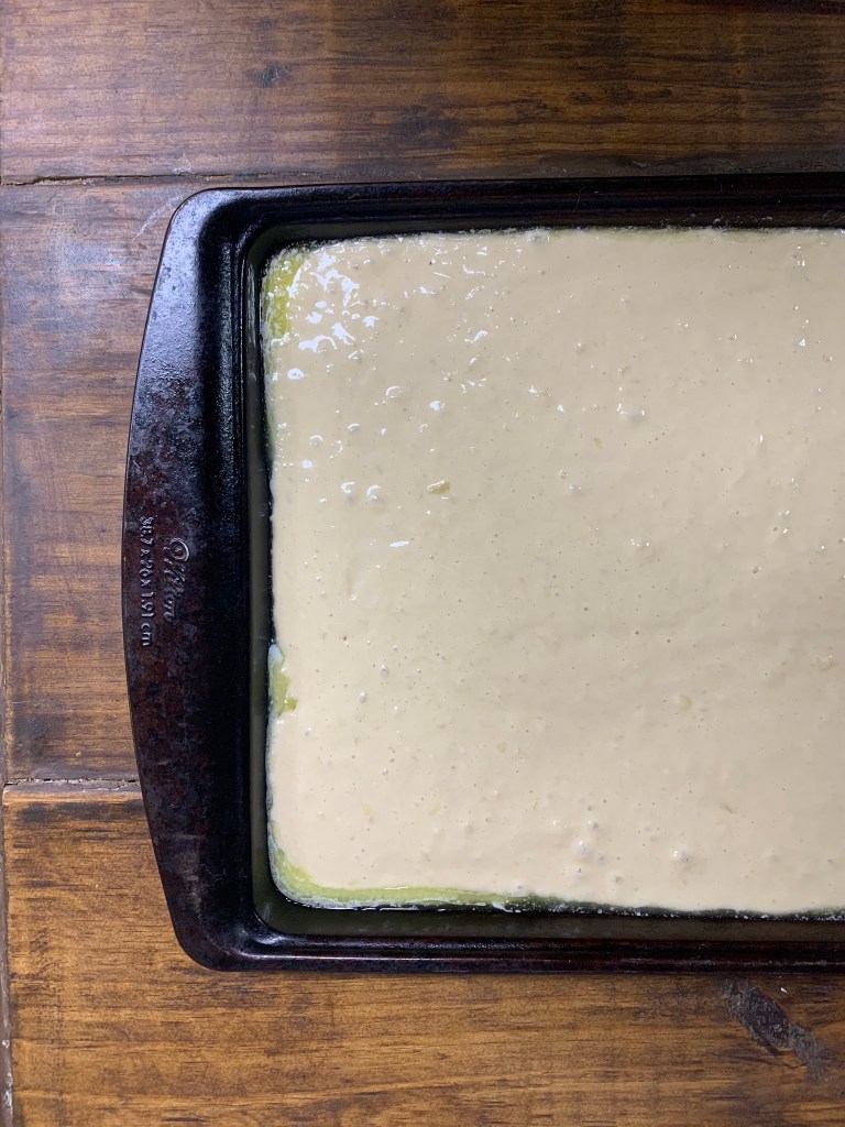I made our usual pancake recipe even simpler by baking it on a sheet pan in the oven. The flavor and texture are just as good as traditional sourdough pancakes, but there’s no more need to stand over the stove flipping pancakes a few at a time.
