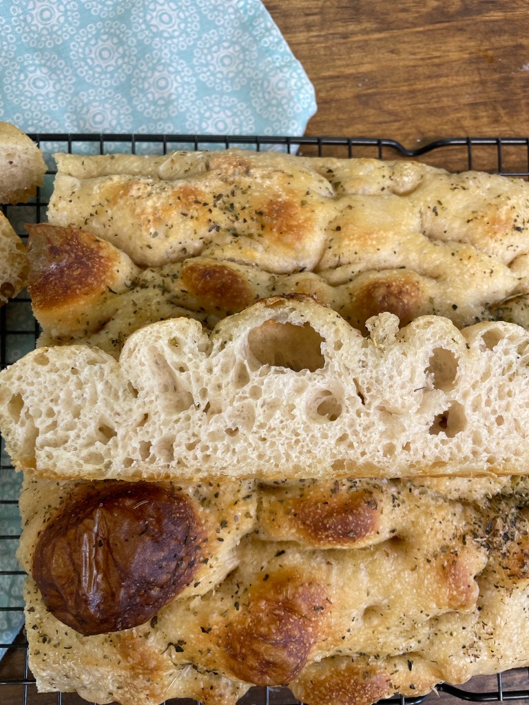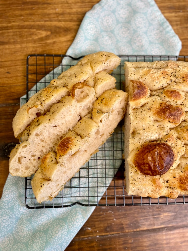 I have seen so many variations of focaccia bread. You can be very creative with a variety of add ins. Here are a few we have tried: