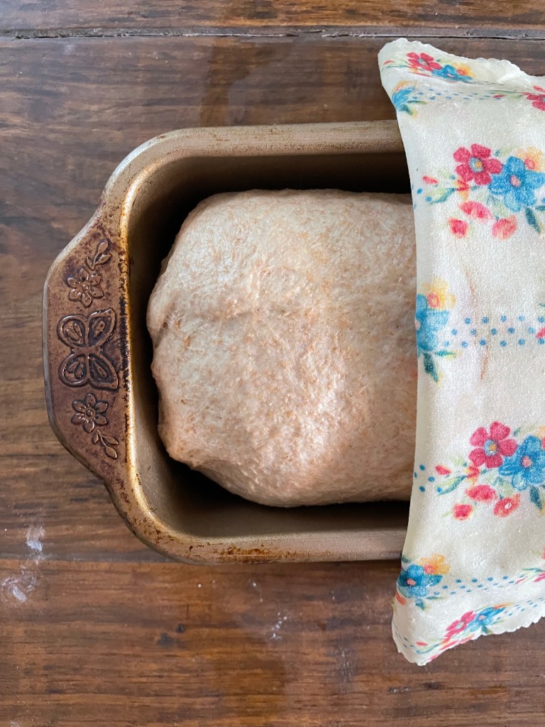 3. Cover with beeswax wrap or damp tea towels, and let it rise for one hour. The dough should double in size.